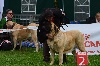 très puissante avec beaucoup de volume, pas en condition pour l'expo aujourd'hui, devrait être beaucoup plus ferme, ossature suffisante pour sa taille; angulation correcte avant, très marquée à l'arrière, bon poitrail, tête puissante mais féminine, crane et museau bien proportionné, pigmentation excellente.